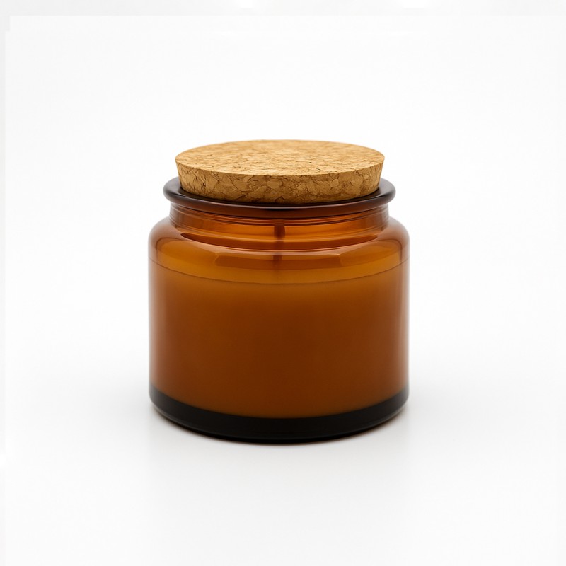 Contenant pour bougie en verre ambré 100 ml avec bouchon liège. Idéal pour les bougies parfumées, de massage ou décoratives.