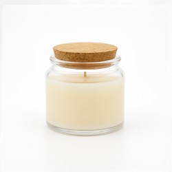 Contenant pour bougie en verre transparent 100 ml avec bouchon en liège naturel.