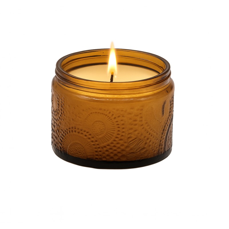 Le verre ambré protège les senteurs et la cire, tout en apportant une touche chaleureuse.